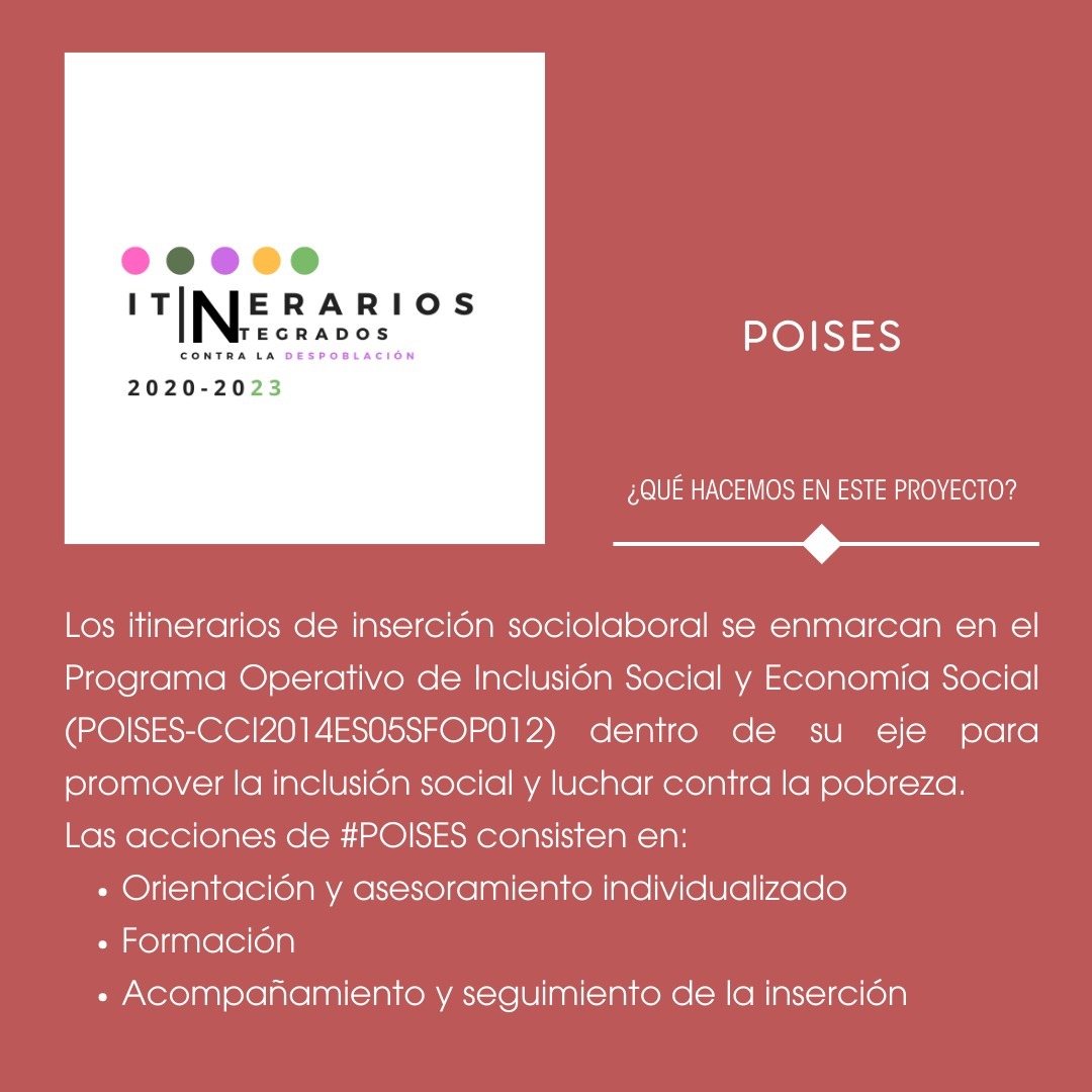 Programa Operativo de Inclusión Social y de la Economía Social POISES (CCI2014ES05SFOP012) del Ministerio de Trabajo y Economía Social, dentro de su eje para promover la inclusión social y luchar contra la pobreza y cualquier forma de discriminación. Los itinerarios son gratuitos y financiados por el Fondo Social Europeo (FSE invierte en tu futuro).